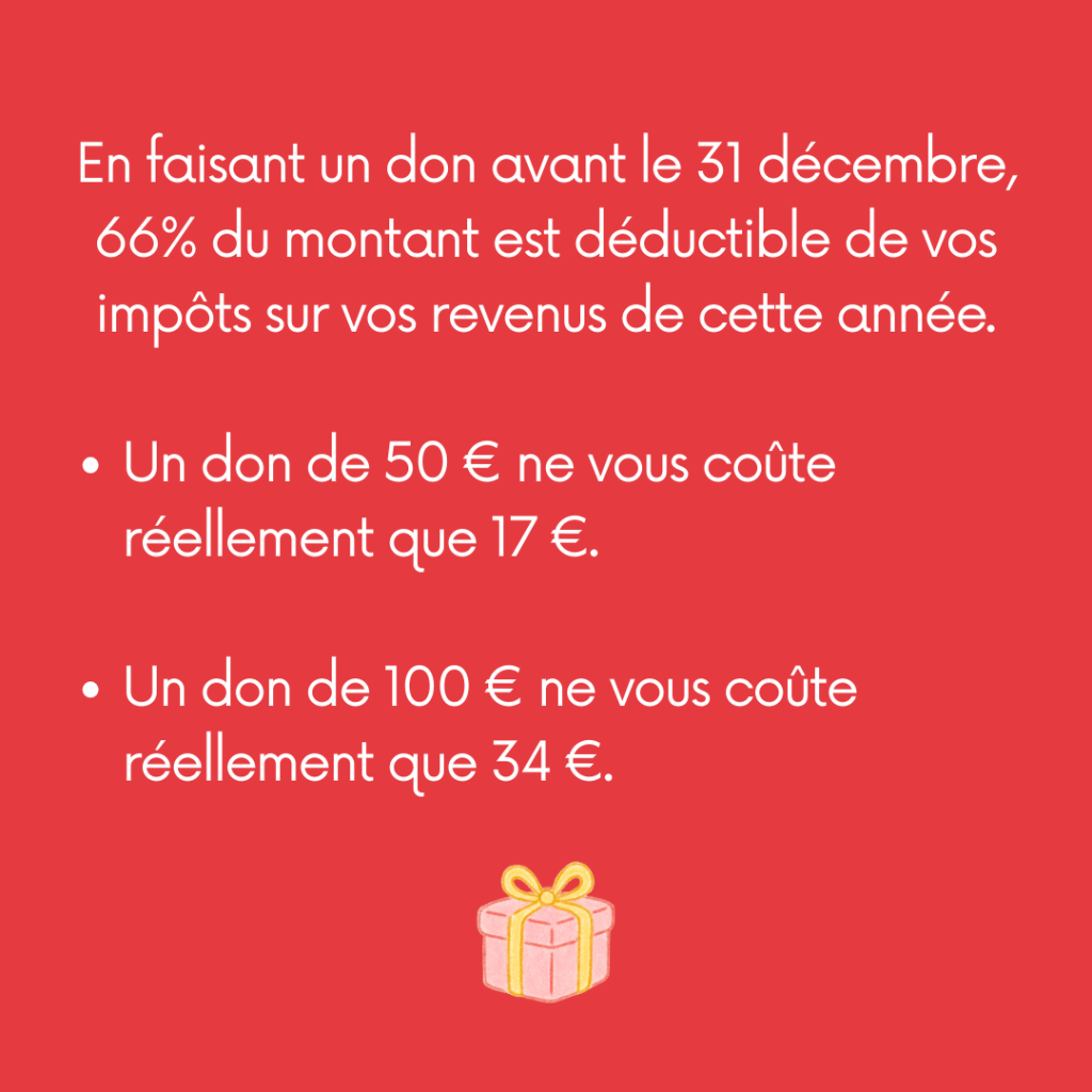 🪙 Chaque don fait l’objet d’une défiscalisation de 66% sur votre prochain avis d’imposition.